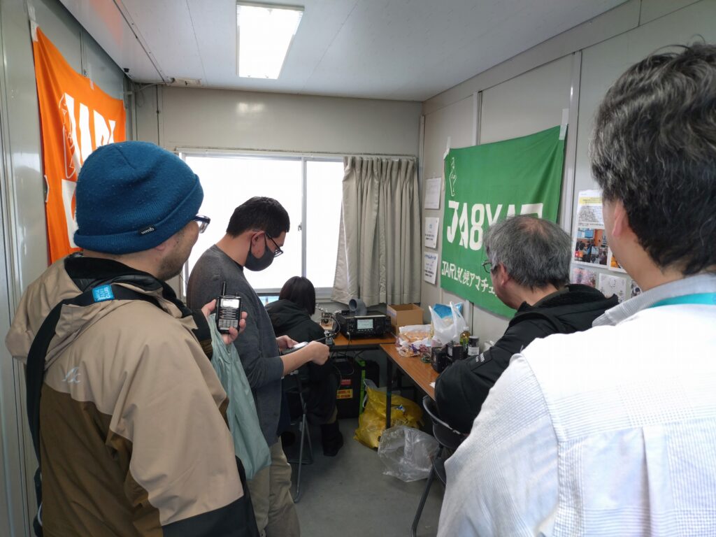 2/4からさっぽろ雪まつり大通8丁目会場にて8J8SSFの運用が始まりました。開催期間中、ぜひ遊びにいらしてください。ハンディ機をお持ちの方は、現場で8J8SSFと交信もできます。メッセージカードを貼るスペースを設けますが、ご自身のQSLカードを持ってきて貼ってもOKです。ぜひ足跡を残していってください。お待ちしております。初日となった昨日は、のべ25人来場いただきました。二日目の本日も午前中だけで20人以上の来訪報告があがっています。来場者数は、土日と祝日で大幅に増えると予想しています。特別局コール8J8SSFでの交信体験、モールス発信器で名前を打つ体験も用意しています。昨年同様のVダイポール、GPに加えて、3.5の短縮DPも増設し、初日から140QSOできました。体験運用であったり、サロン的な場でもありますので、運用が途切れる時間帯もありますが、11日まで多くのQSOができるように取り組んでいきます。
